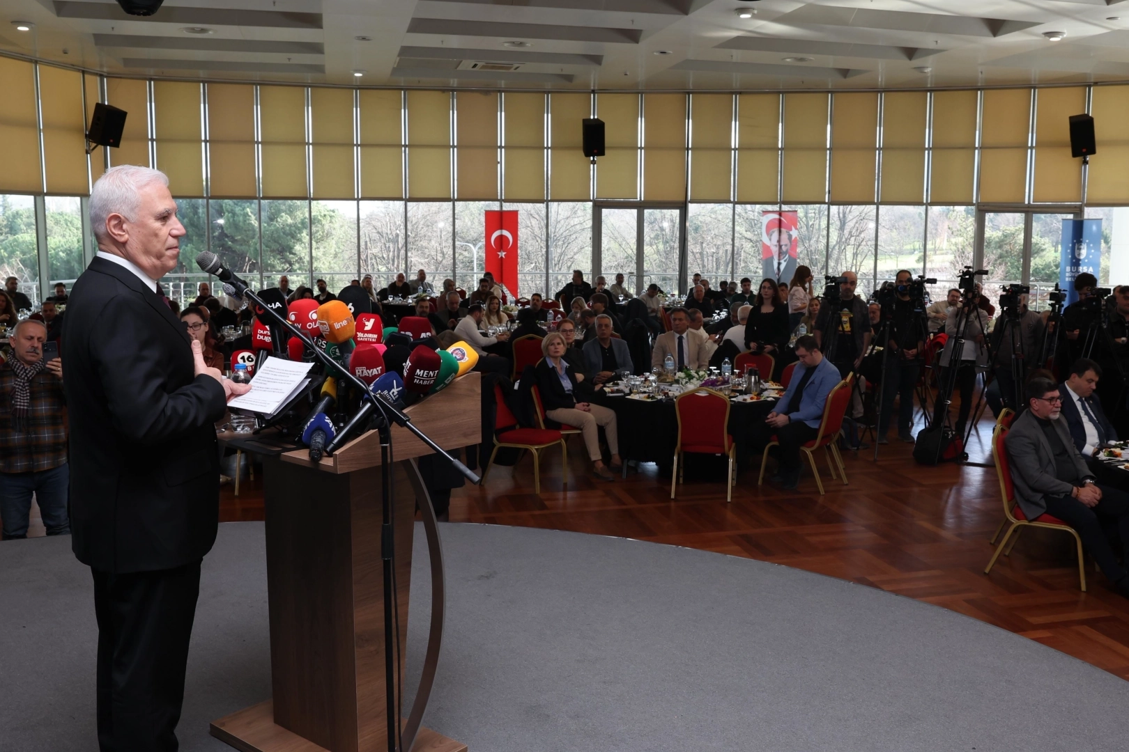 BURSA (İGFA) - Atatürk Kültür Merkezi Merinos Yerleşkesi’ndeki programa, Başkan Mustafa Bozbey’in yanı sıra CHP Bursa Milletvekilleri Hasan Öztürk, Büyükşehir Belediyesi yöneticileri, basın meslek kuruluşlarının yöneticileri, yerel ve ulusal medya temsilcileri katıldı. “BASIN, TEMİZ YÖNETİMİN VE TOPLUMSAL DENETİMİN GÜVENCESİDİR” Basın özgürlüğünün önemine vurgu yaparak konuşmasına başlayan Başkan Mustafa Bozbey, özgür, bağımsız ve güçlü bir basın olmadan şeffaf bir yönetimden ve güvenli bir toplumdan söz edilemeyeceğini söyledi. Basın kuruluşlarının; temiz yönetimin, toplumsal denetimin ve ortak aklın en önemli güvencelerinden olduğunun altını çizen Başkan Mustafa Bozbey, “Doğru, zamanında ve sorumlu biçimde yapılan her haber; toplumun sağlığına, güvenliğine ve huzuruna doğrudan katkı sunmaktadır. Ne yazık ki gazetecilik mesleği uzun süredir baskılarla, sansürlerle, erişim engelleriyle, tehditlerle ve cezalarla zayıflatılmaya çalışılmaktadır. Haber alma hakkının önüne konan engeller; tutuklu gazeteciler, kapatılan yayınlar ve dijital mecralara getirilen kısıtlamalar, kabul edemeyeceğimiz bir tabloyu karşımıza çıkarmaktadır. Zorluklara rağmen mesleğinizi sürdürmeye gayret ediyorsunuz. Hepinize bunun için teşekkür ediyorum” diye konuştu.