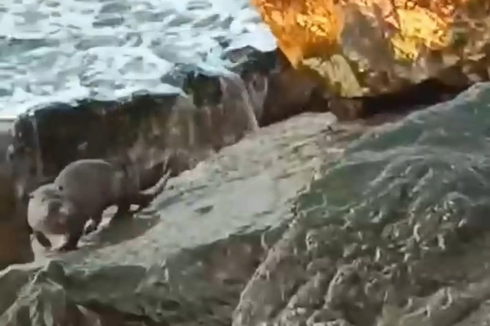 Sefer DEMİR / DÜZCE (İGFA) - Düzce'nin Akçakoca ilçe merkezine yakın kayalıklarda yaşadığı tespit edilen su samurunu kayıt altına alan İbrahim Bilgin, sevimli hayvana “Sumrucuk” adını verdi.