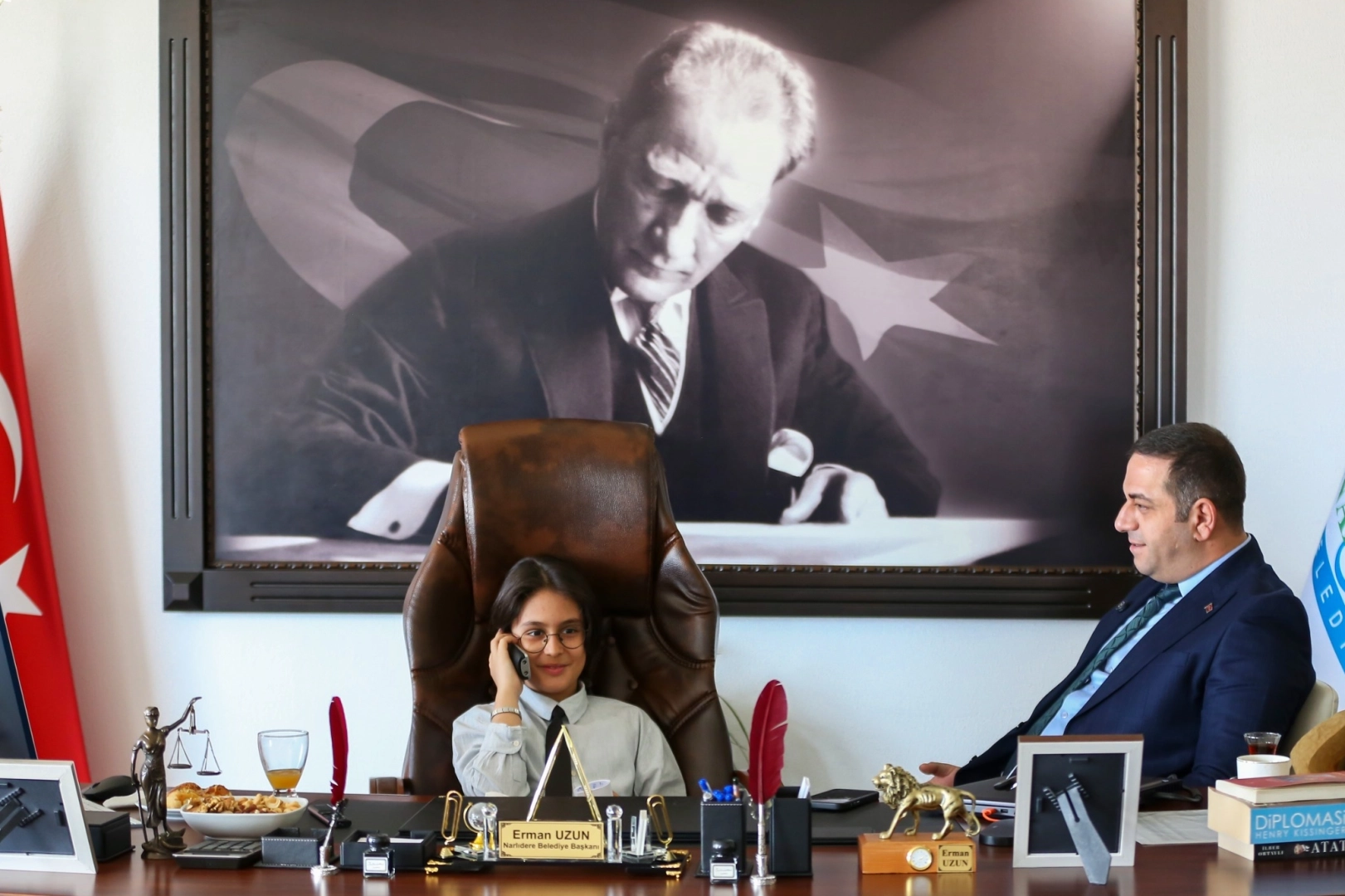 İzmir Narlıdere Belediye Başkanı Erman Uzun, 23 Nisan Ulusal Egemenlik ve Çocuk Bayramı’nda koltuğu, İlhan Onat İlkokulu 3’üncü sınıf öğrencisi Boran Kolçak’a devretti.