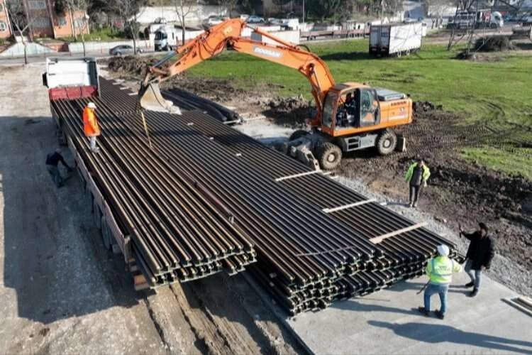 Projede kullanılacak olan 18 metre uzunluğunda 920 adet tramvay rayı şantiye alanına getirilmeye başlandı. Yüklenici firma ayrıca Alikahya Stadyum Tramvay Hattının 1 no’lu trafo binasının temel kazılarına başladı.