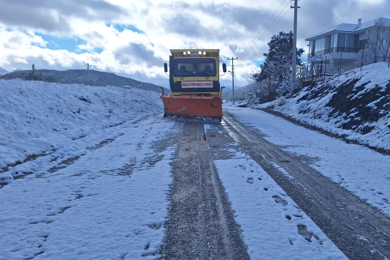 Muğla Büyükşehir Belediyesi ekipleri, kar yağışının etkili olduğu bölgelerde vatandaşların güvenli ulaşımını sağlamak amacıyla 7/24 görev başında çalışmalarını sürdürüyor.