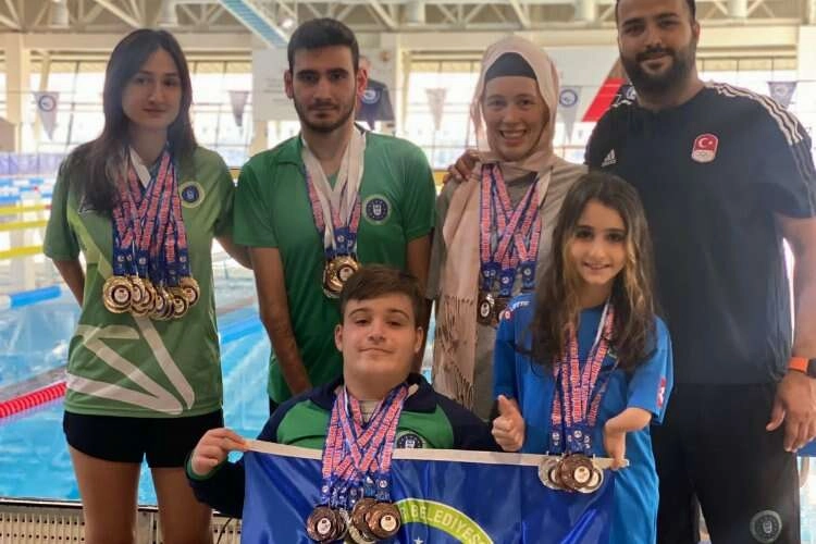 BURSA (İGFA) - Bolu Olimpik Yüzme Havuzu'nda yapılan yarışlarda 5 sporcuyla mücadele eden Bursa Büyükşehir Belediyespor, madalyalarla adeta ambargo koydu.