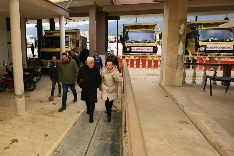 Hazırlıklar hakkında bilgi almak için araç filosunu ziyaret eden Muğla Büyükşehir Belediye Başkanı Dr. Osman Gürün, araç ve gereçleri yerinde inceledi.