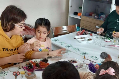 Proje sorumlusu Hacer Can, çocukların dilediği malzemelerle kendi kar kürelerini oluşturduklarını belirtti.
