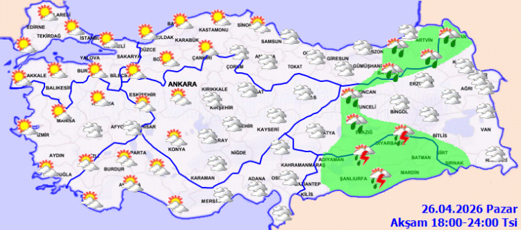 BURSA (İGFA) - Meteoroloji Genel Müdürlüğüİ 26 Nisan Pazar gününe ilişkin hava tahmin raporunu yayımladı.